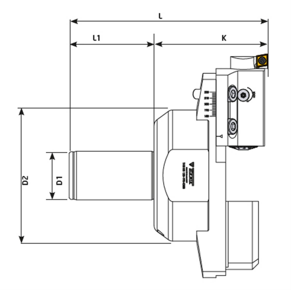 Tête d'alésage 120-190 K093 CCMT 09 Boring Tools Finish Dmin 120 - Dmax 190 - K 93,7 - D1 40 - L1 70 - D2 109 - L 163,7