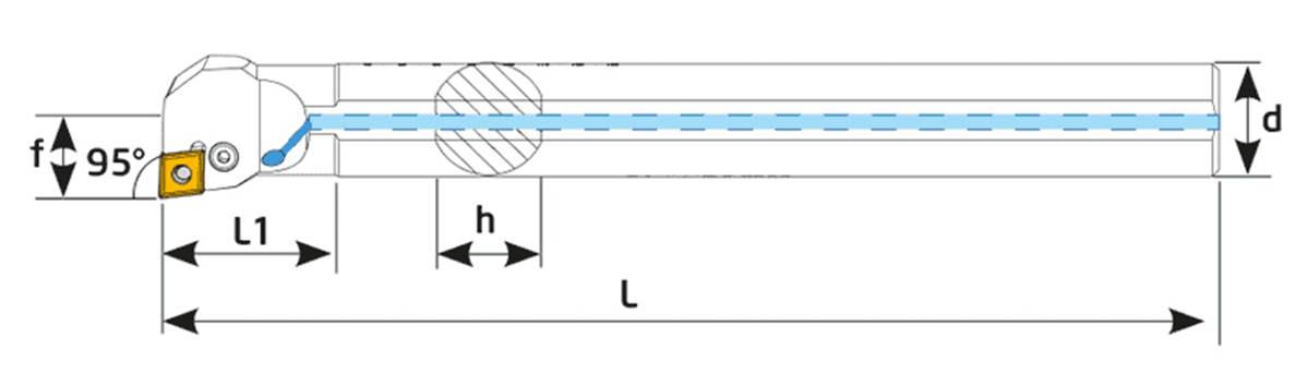 Barre d'alésage 95 PCLNR avec lubrification ØDmin 40mm - d 32mm - L 300mm - L1 50mm - f 22mm - h 30mm