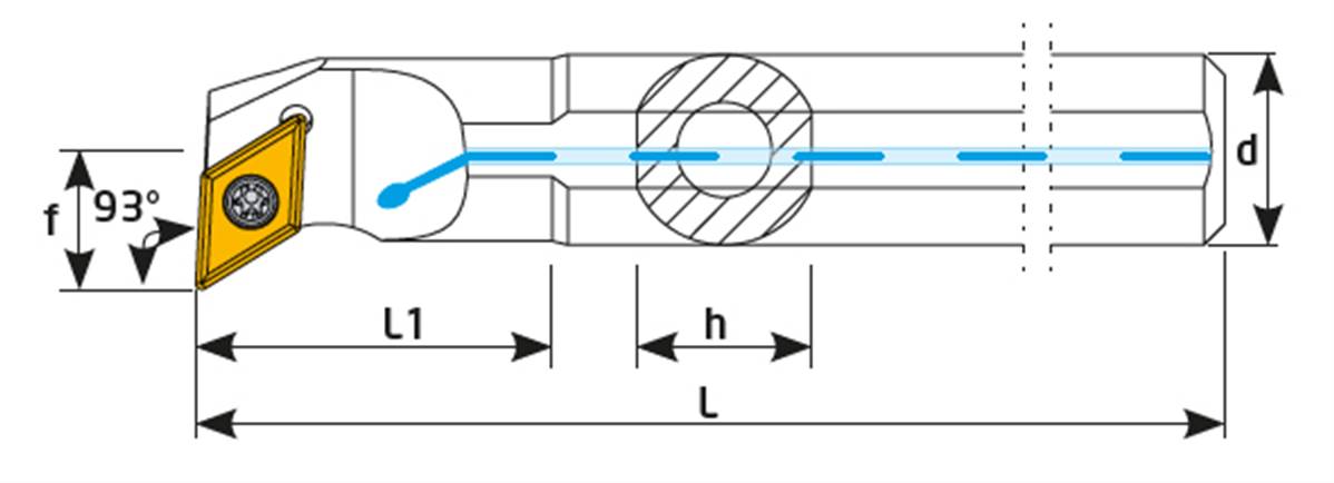 Barre d'alésage lubrifié A16Q SDUCR 07 Boring Bar (Cooled)