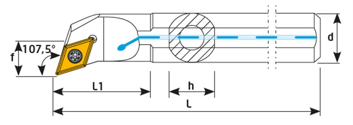 Barre d'alésage lubrifié A25R SDQCR 11 Boring Bar (Cooled)