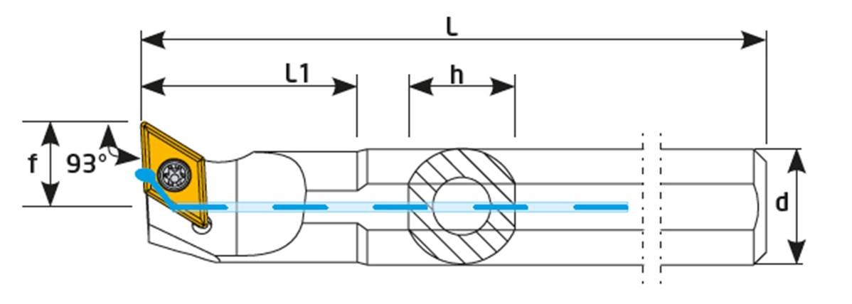 Barre d'alésage lubrifié A25R SDUCL 11 Boring Bar (Cooled) Plaquettes DC--11T3 Dmin 32