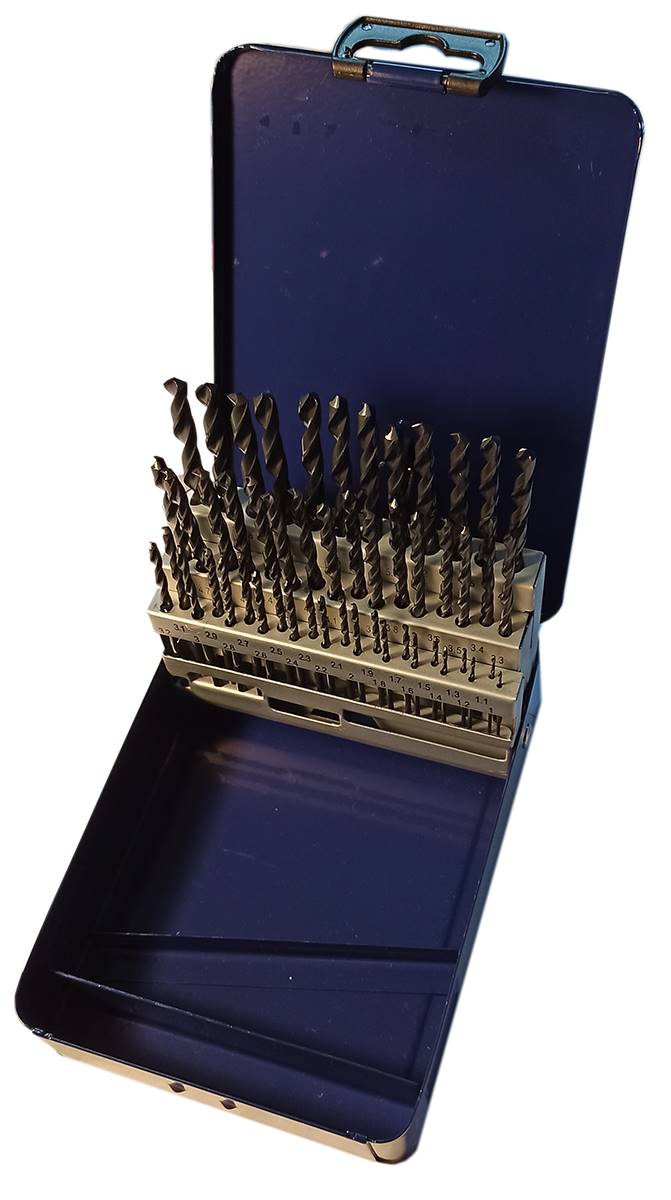 Coffret métallique de 51 forets cylindriques HSS laminés, LAM de Ø 1 à Ø 6 par 0,1 mm. Affûtage standard 118°. DIN 338