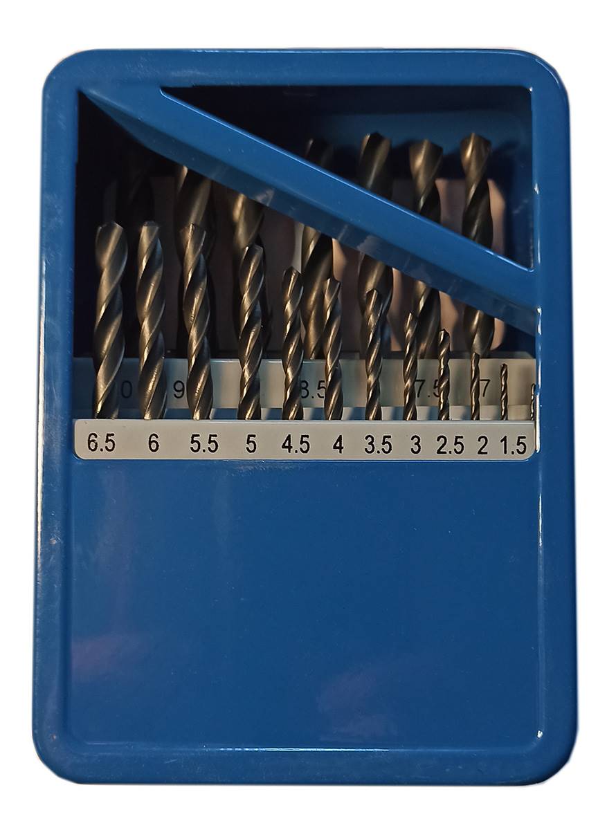 Coffret métallique de 19 forets cylindriques HSS laminés, LAM de Ø 1 à Ø 10 par 0,5 mm. Affûtage standard 118°. DIN 338
