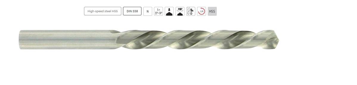 Foret taillé meulé à gauche série courte Ø11,5mm x142/94 DIN 338 N, 118°HSS