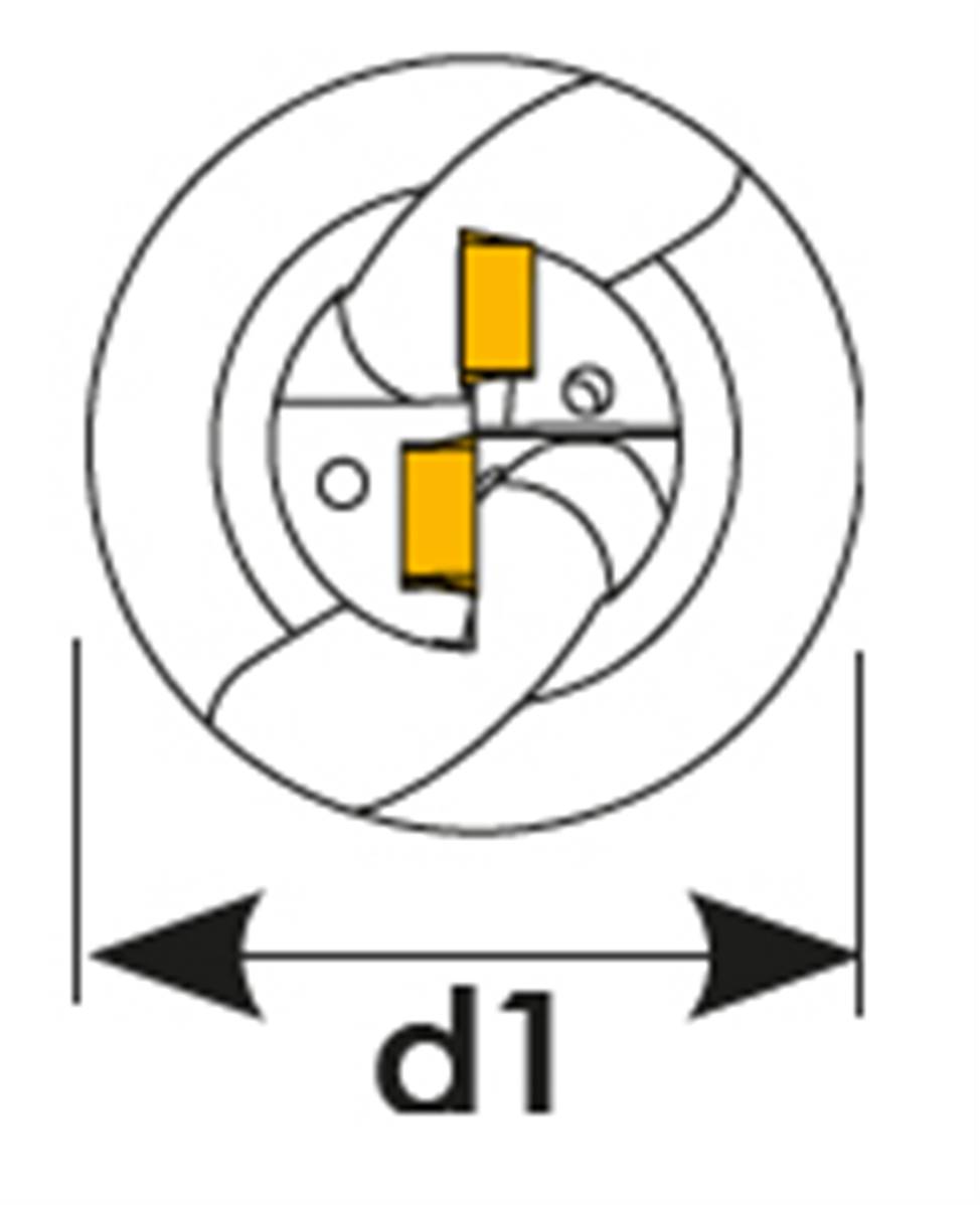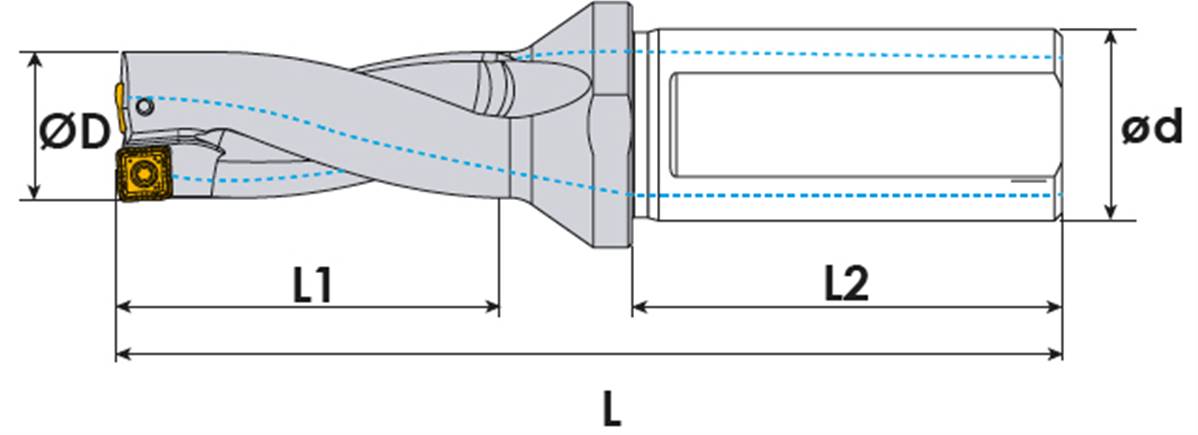 Forets à plaquettes indexables avec lubrification SOMT 0502 TGTC ØD 14,5mm - Ød 20mm - d1 25mm - L 114mm - L1 42mm - L2 50mm