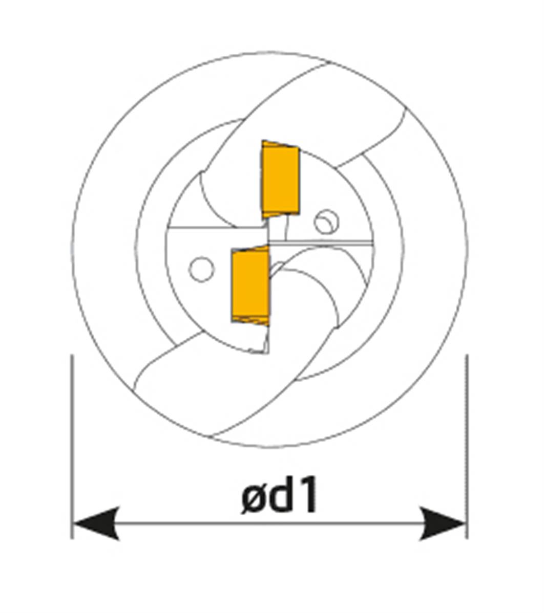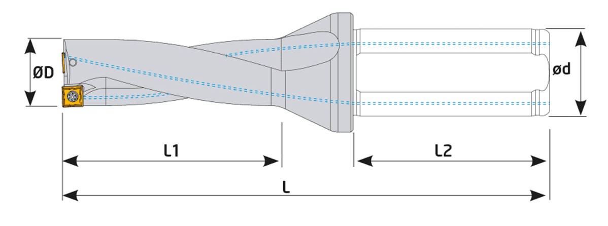 Forets à plaquettes indexables avec lubrification SPMG 1104 TGTC ØD 35mm - Ød 32mm - d1 44mm - L 199mm - L1 105mm - L2 58mm