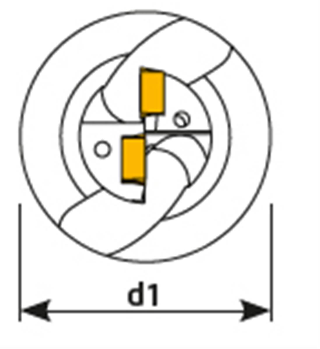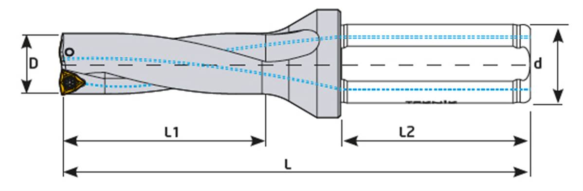 Forets à plaquettes indexables avec lubrification WCM_ 0503 KRLY ØD 29mm - Ød 25mm - d1 39mm - L 200mm - L1 116mm - L2 56mm