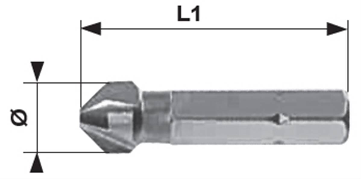 Fraise à ébavurer 90° HSS queue hexagonale 1/4" Ø: 16.5mm L1: 40mm Queue: 1/4"