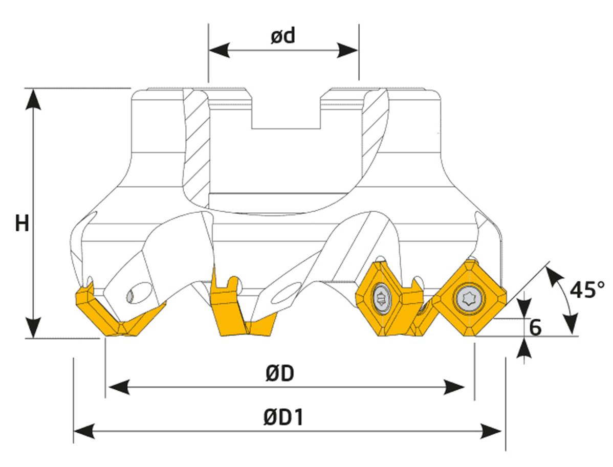 Fraise à plaquettes 45° SNKX 1206 - ØD 40 - ØD1 53 - Ød 16 - Z 3 - H 45