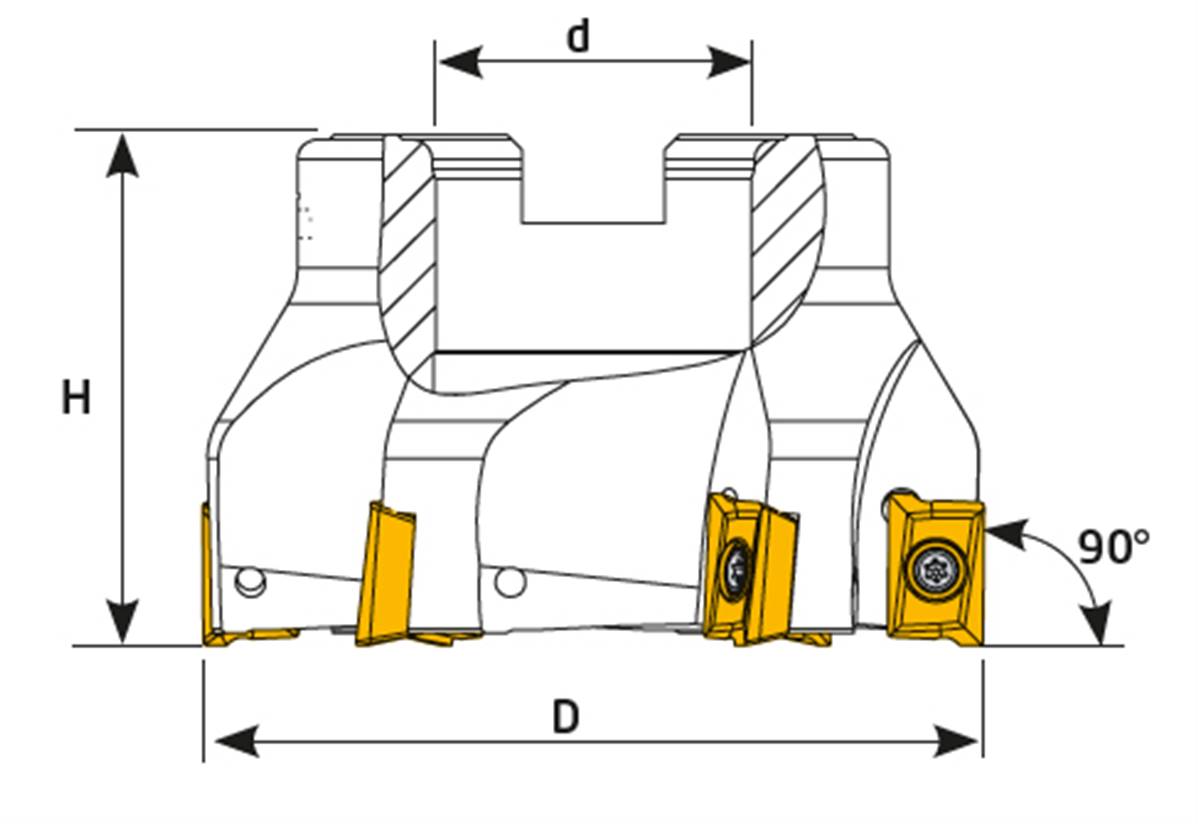 Fraise à surfacer dresser 90° D040 d16 Z04 ADKT 15 Face Mill