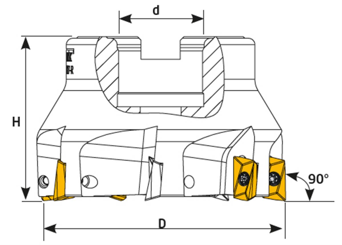 Fraise à surfacer dresser 90° D040 d16 Z04 ADMT 12 Face Mill