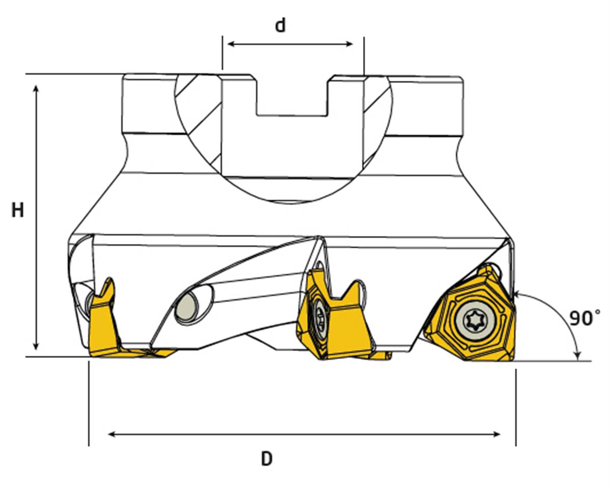 Fraise à surfacer dresser 90° D050 d22 Z03 WNMU 08 Face Mill Plaquettes : WNMU 0806 kyocera l 8,2 - d 13 - S 6,4