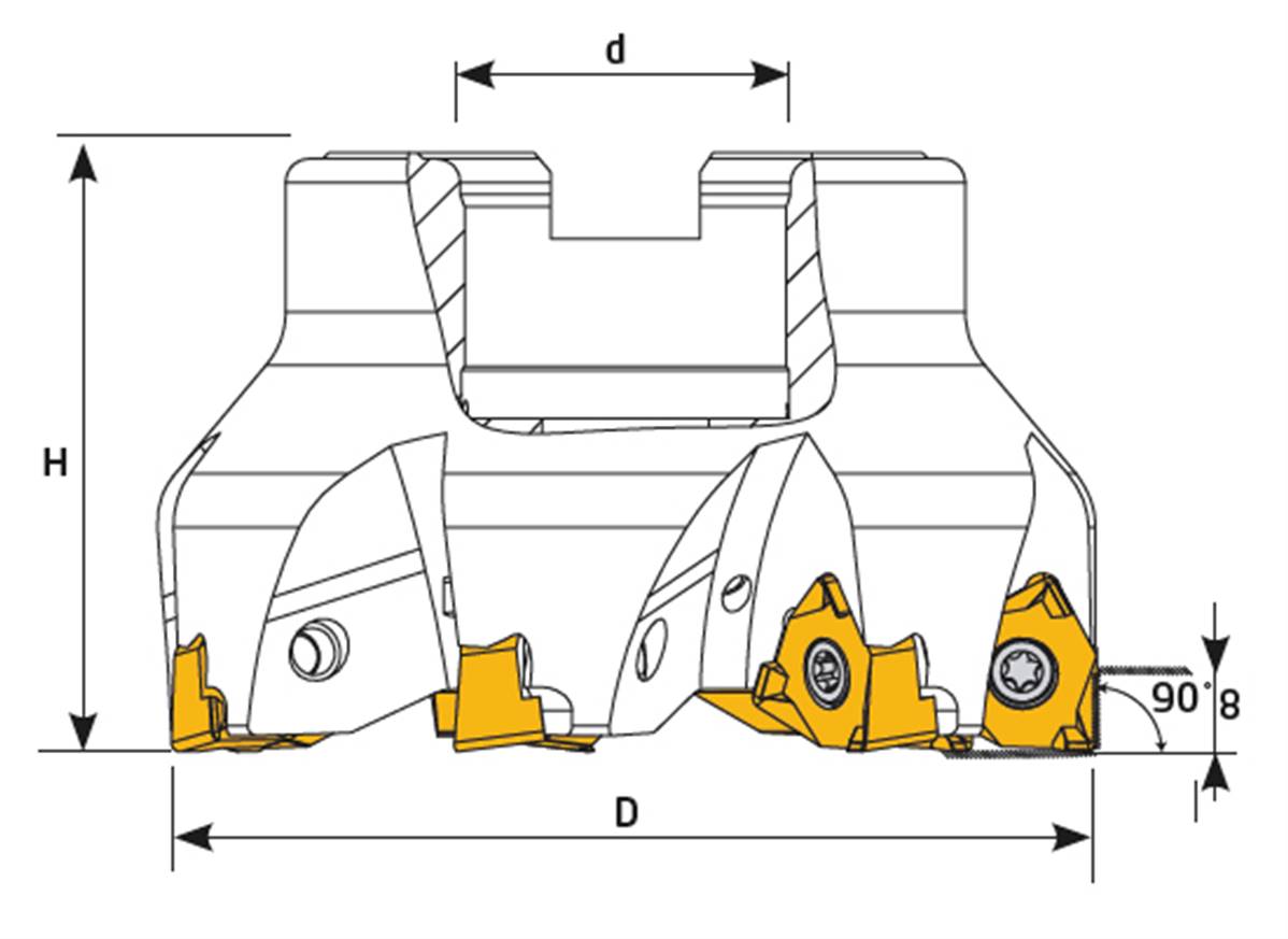 Fraise à surfacer dresser 90° D100 d32 Z08 WNGX 08 Face Mill