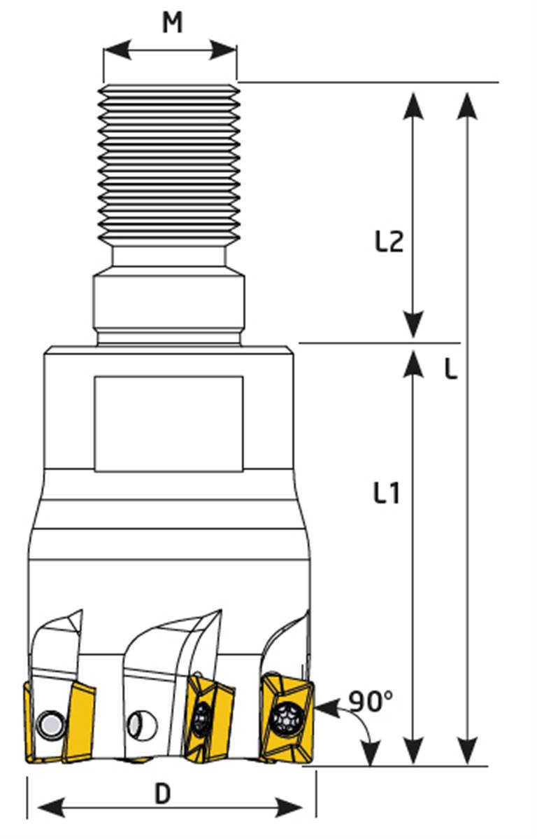 Fraise D16 Z04 M08 ADMX 07 Modular End Mill Plaquettes ADMX 0702 PRMT L 7,28 - S 2,48