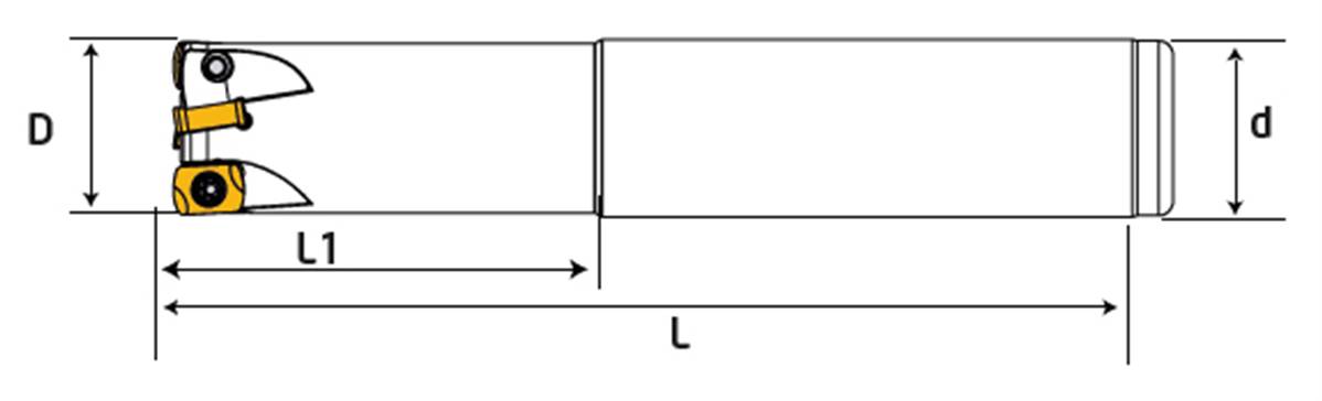 Fraise D20 d20 Z03 L130 LNMX 06 End Mill Plaquettes LNMX 0603 KRLY L 10 - S 6,8 - A 3,6