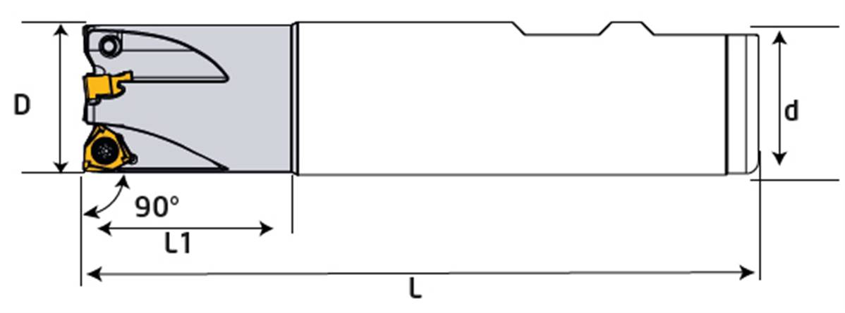 Fraise D25 d25 Z04 L110 WNGX 04 End Mill Plaquettes WNGX 0403 KRLY l 4,3 - d 7 - s 3,46