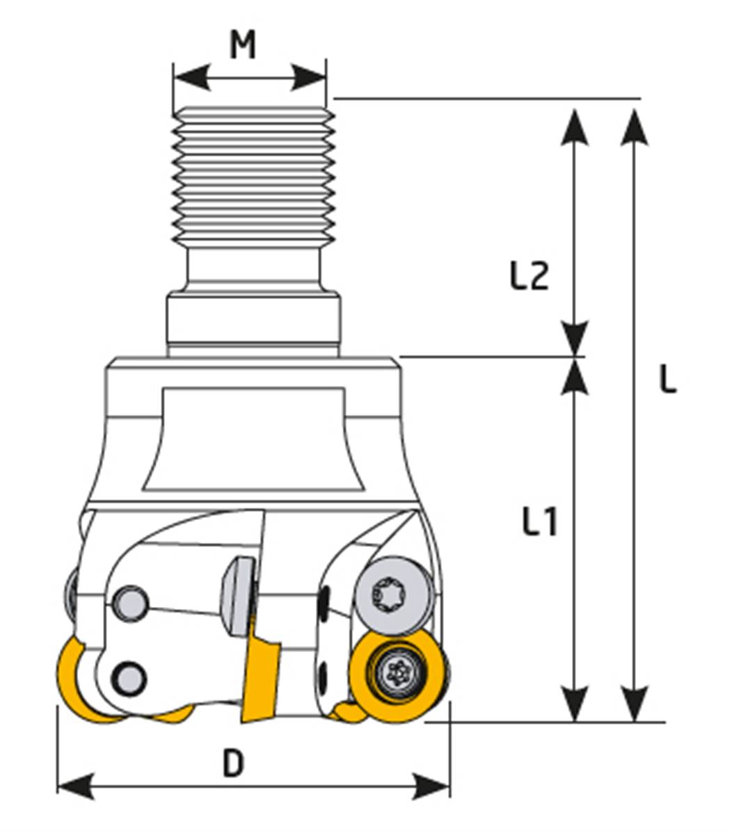 Fraise D40 Z04 M16 RDMT 12 Modular End Mill