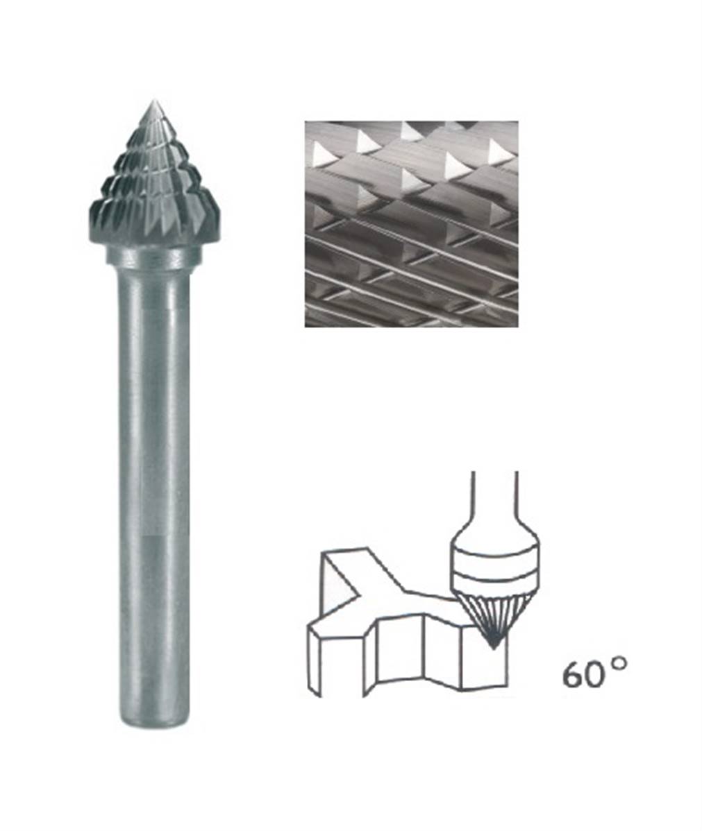 Fraise lime rotative carbure conique à 60° denture denture Croisée-Universelle T06 Ø 16 x 14 queue de Ø 6 16X14 MM Norme USA