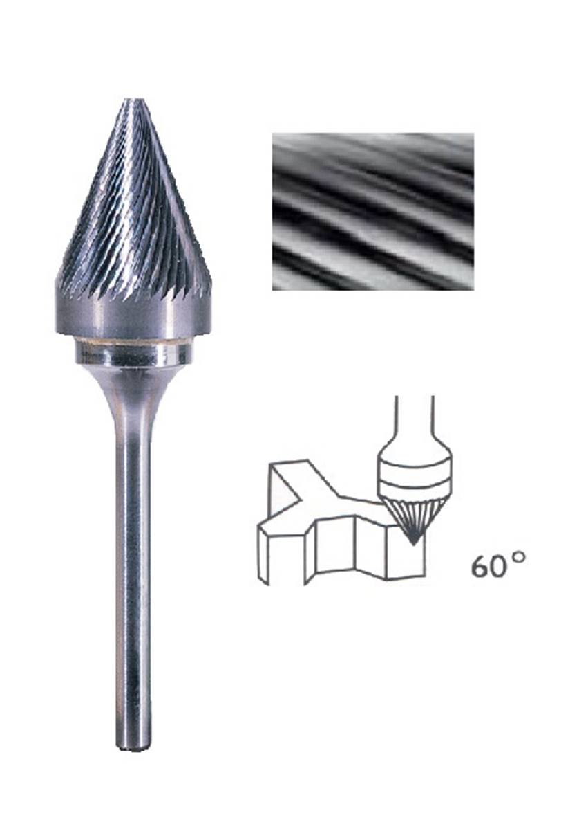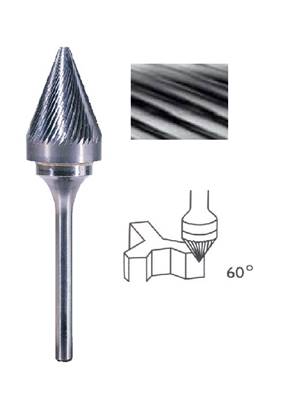 Fraise lime rotative carbure conique à 60° denture Simple - T03 Ø 16 x 13 queue de Ø 6 16X13 MM Norme USA