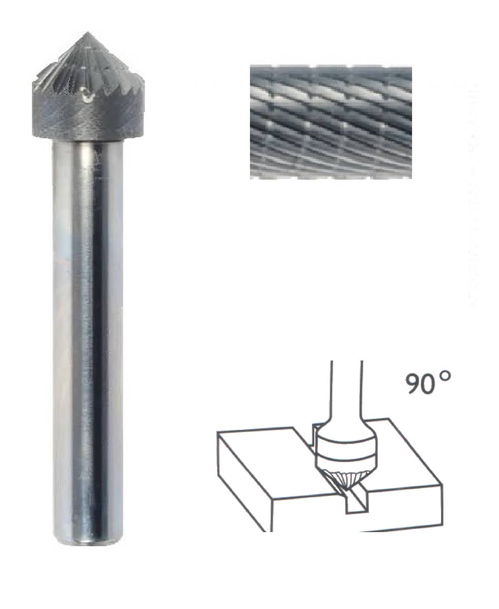 Fraise lime rotative carbure conique à 90° denture Brise copeaux - T05 Ø 12 x 6 queue de Ø 6 12X6 MM Norme USA