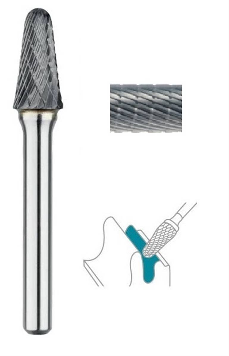 Fraise lime rotative carbure conique bout arrondie SL denture Brise copeaux - T05 Ø 16 x 33 queue de Ø 6 16X33 MM Norme USA SL-6M