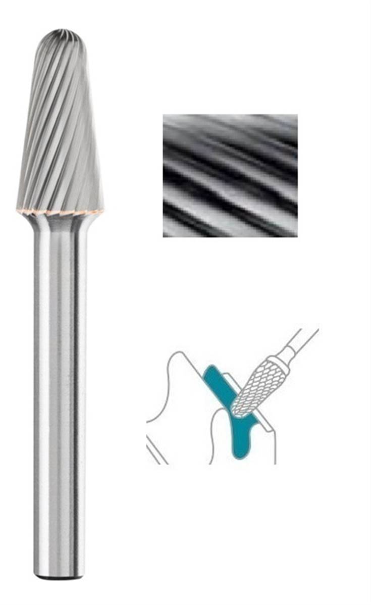 Fraise lime rotative carbure conique bout arrondie SL denture Simple - T03 Ø 16 x 33 queue de Ø 6 16X33 MM Norme USA SL-6M
