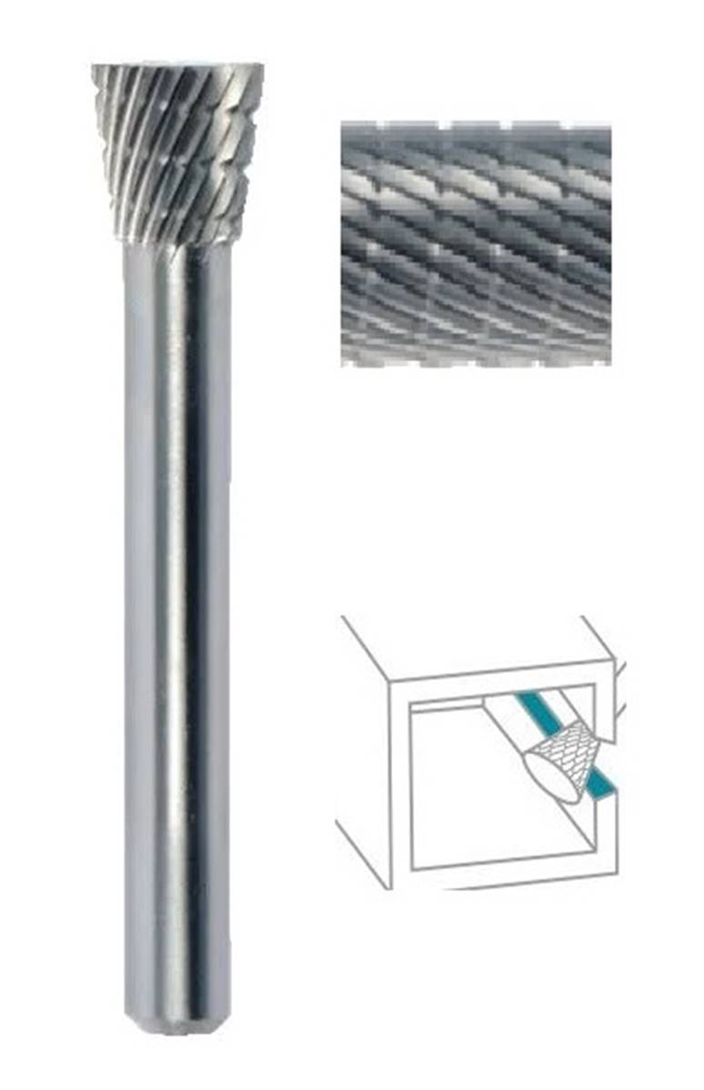 Fraise lime carbure conique renversée denture Brise copeaux - T05 Ø 16 x 15 queue de Ø 6 16X15 MM Norme USA SN