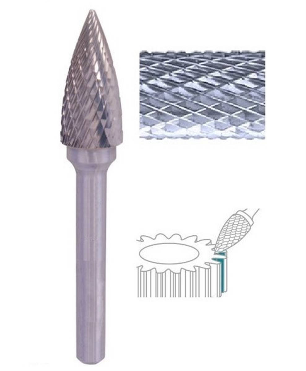 Fraise lime rotative carbure ogive tête flame SG denture Diamant - T04 Ø 12 x 25 queue de Ø 6 12X25 MM Norme USA SG-5M