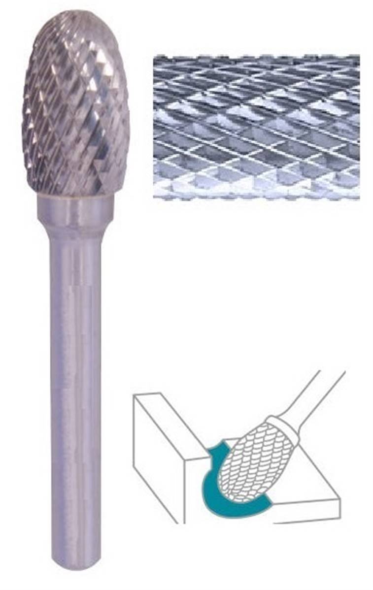 Fraise lime rotative carbure tête ovale SE denture Diamant - T04 Ø 10 lt 250 queue de Ø 6 10X16X250 MM Norme USA SE-3M