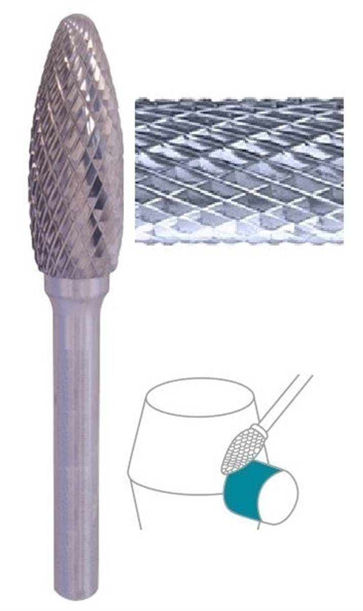 Fraise lime rotative ogive tête flame arrondie SH denture Diamant - T04 Ø 12 x 25 queue de Ø 6 12X25 MM Norme USA SH-5M