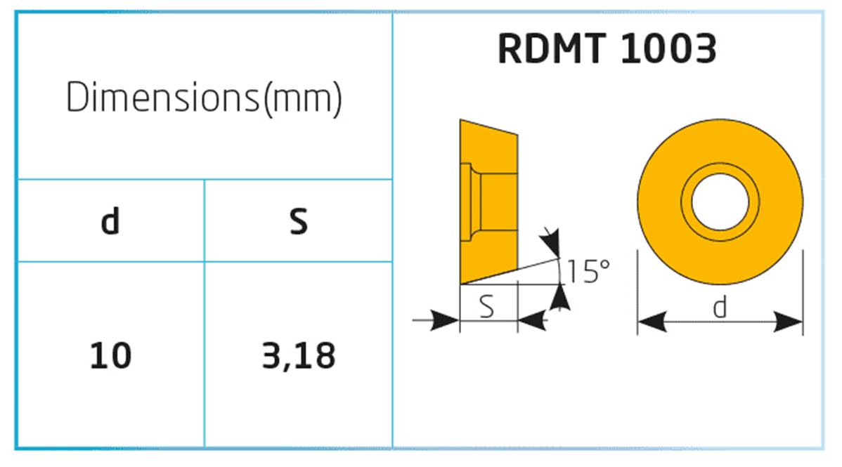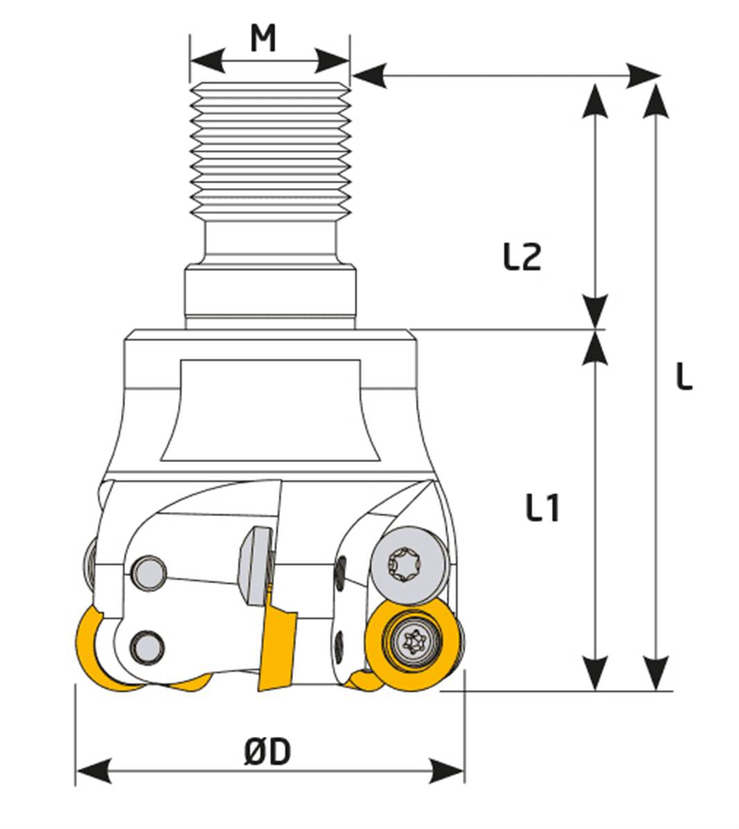 Fraise modulaire RDMT 1003 ØD 42mm - M16 - Z 5 - L 60mm - L1 mm - L2 mm -Plaquette RDMT 1003 ISO - Vis de blocage TC040 M3,5 - Vis de serrage M3,5 x 8,5