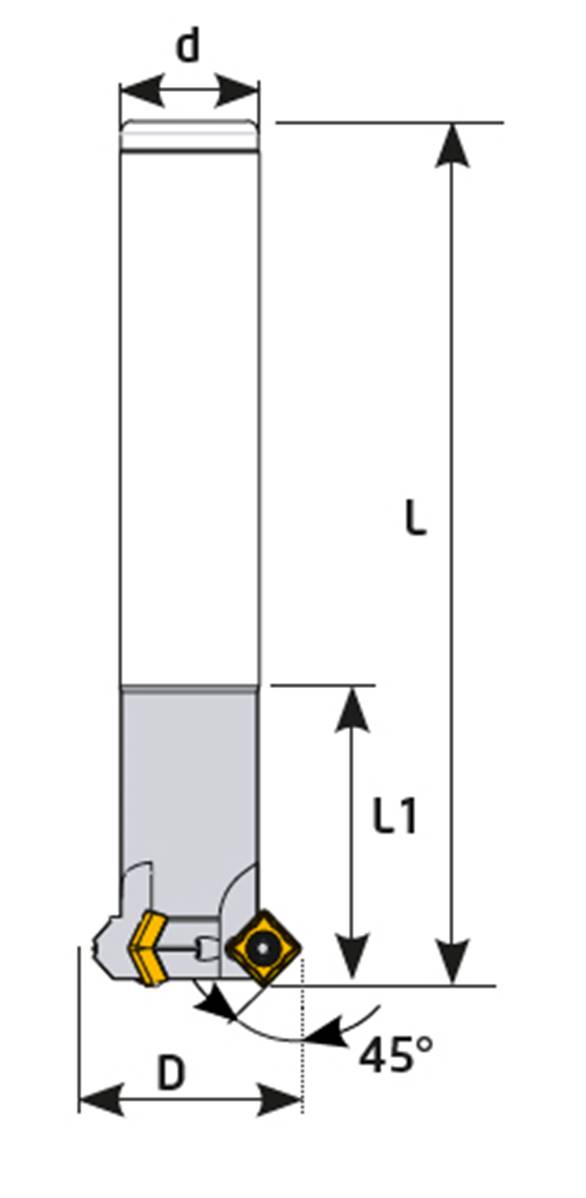 Fraise T 45° D32 d25 Z02 L150 SPMT 09 T-Slot Milling Cutter Plaquettes SPMG 0904 TGTC d 9,8 - S 4,3
