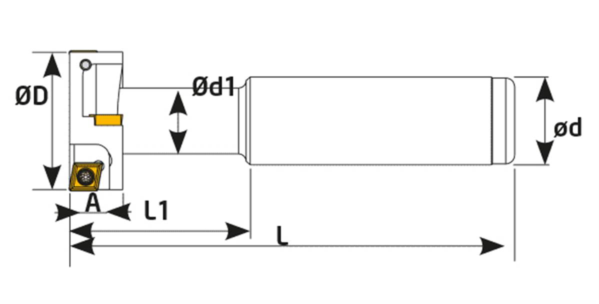 Fraise T CCMT 0602 ISO ØD 25mm - A 11mm - Z 4 - Ød 20mm - Ød1 15mm - L 100mm - L1 32,5mm - Plaquette CCMT 0602 ISO