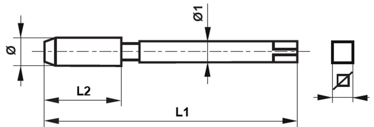 Jeu de 2 tarauds main HSS DIN 2181 étagé filetage unifié pas fin ANSI B 1.1 Tol. 2B UNF Nr0 - L1: 28mm L2: 8mm Ø1: 2.5mm Carré : 2.1mm