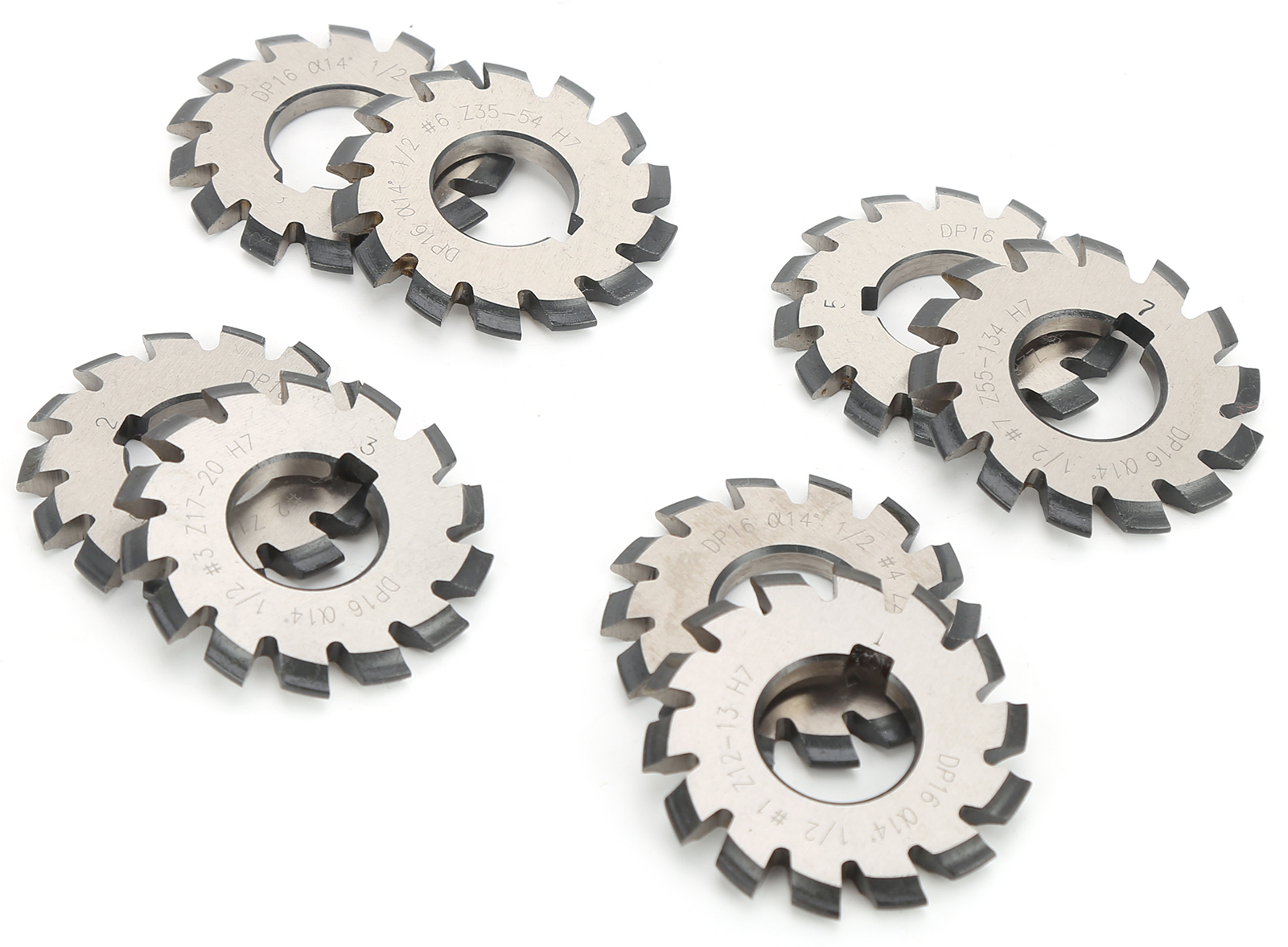 Jeu de 8 fraises module pour engrenages Angle de pression 20° profil constant, alésage lisse et rainure de clavette – Type N – HSS M2 – Module: 0,5 - Nb dents: 12 à 135 +