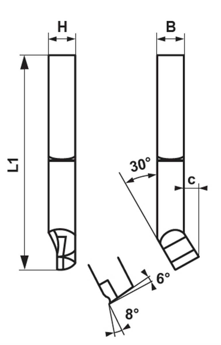 Outils de tour à aléser droit à droite ISO 408 - DIN 4953 HSS-Co10% carré de 25 - L1 300 - C 10 - D (alésage mini) 43