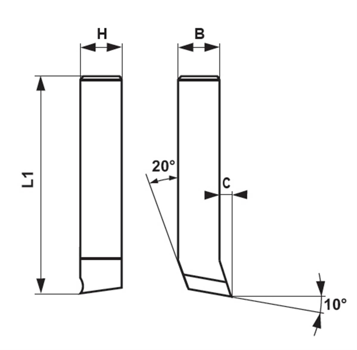 Outils de tour à dresser d’angle à droite ISO 403 - DIN 4958 HSS-Co10% carré de 16 - L1 150 - C 5