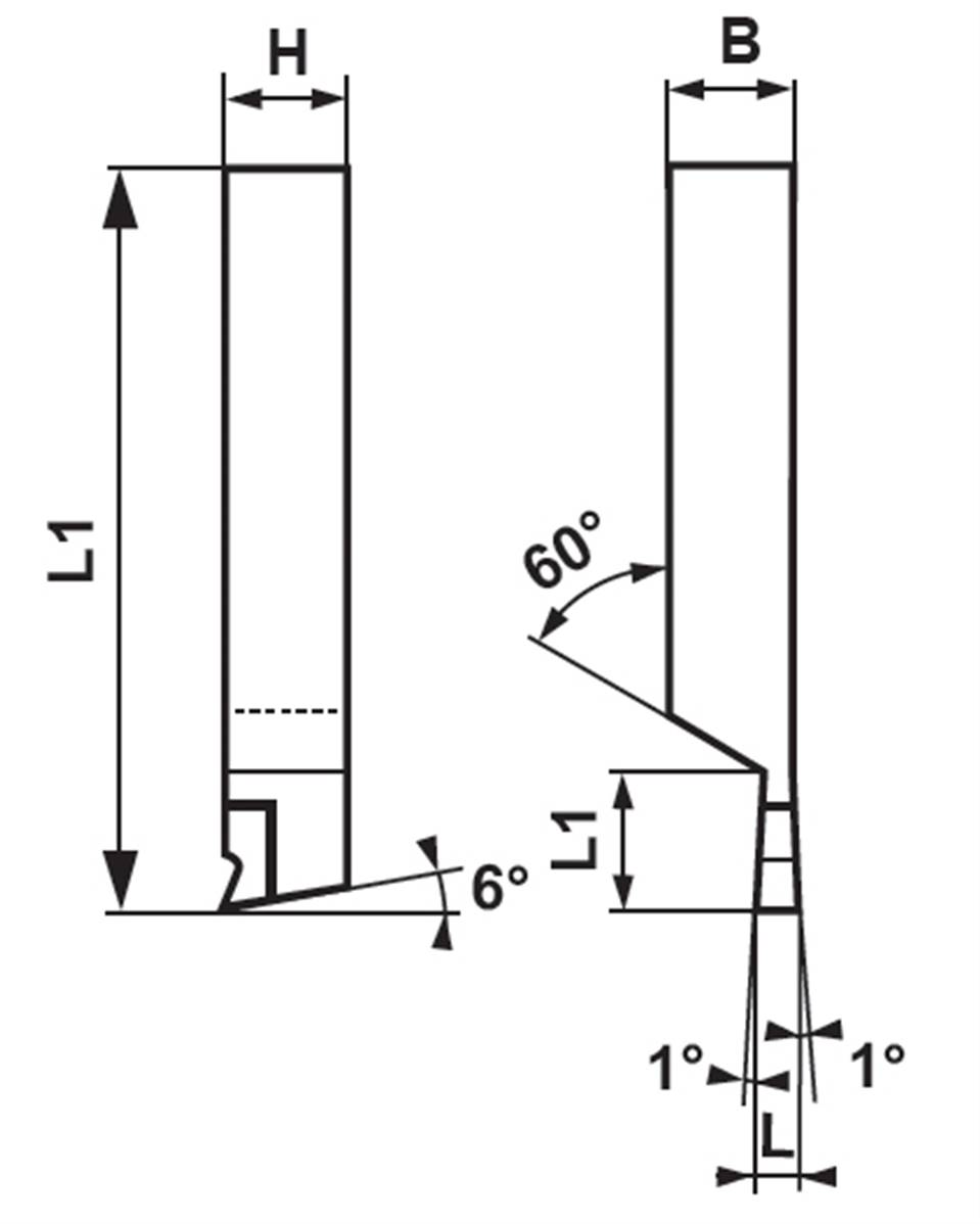 Outils de tour à saigner droit à gauche ISO 407 - DIN 4961 HSS-Co10% carré de 12 - L1 125 - L 4 - L2 16