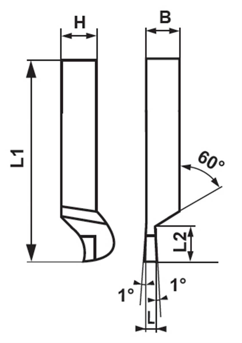 Outils de tour à tronçonner à droite ISO 410 - DIN 4953 HSS-Co10% carré de 12 - L1 125 - L 4 - L2 16
