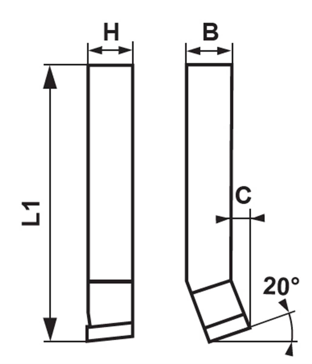 Outils de tour coudé à dresser les faces à gauche ISO 405 HSS-Co10% carré de 10 - L1 100 - C 4
