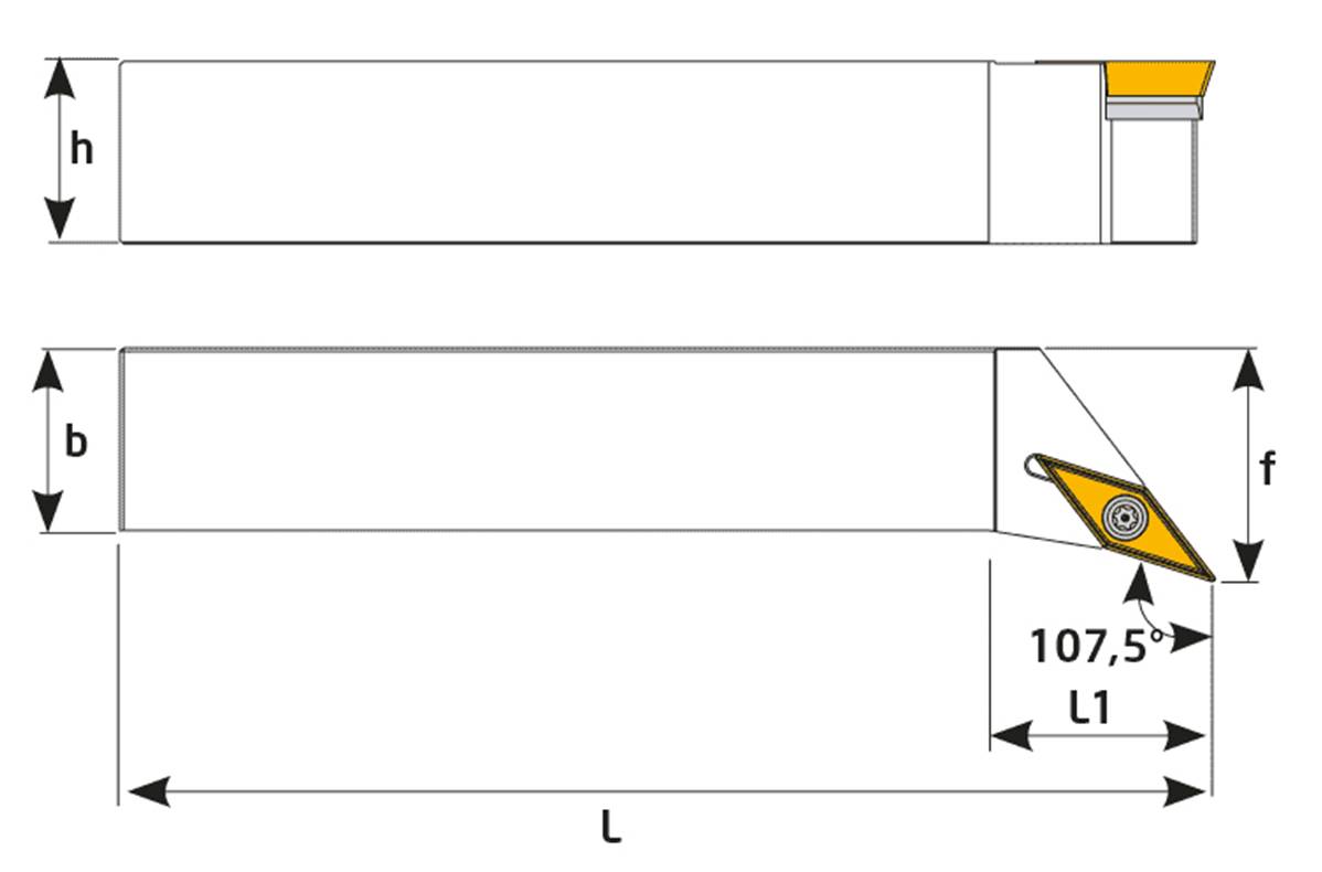 Porte outil de tournage exterieur 107,5° SVHCL - Plaquette VCMT 1604 - L 125mm - L1 30mm - h 20mm - f 25mm - b 20mm