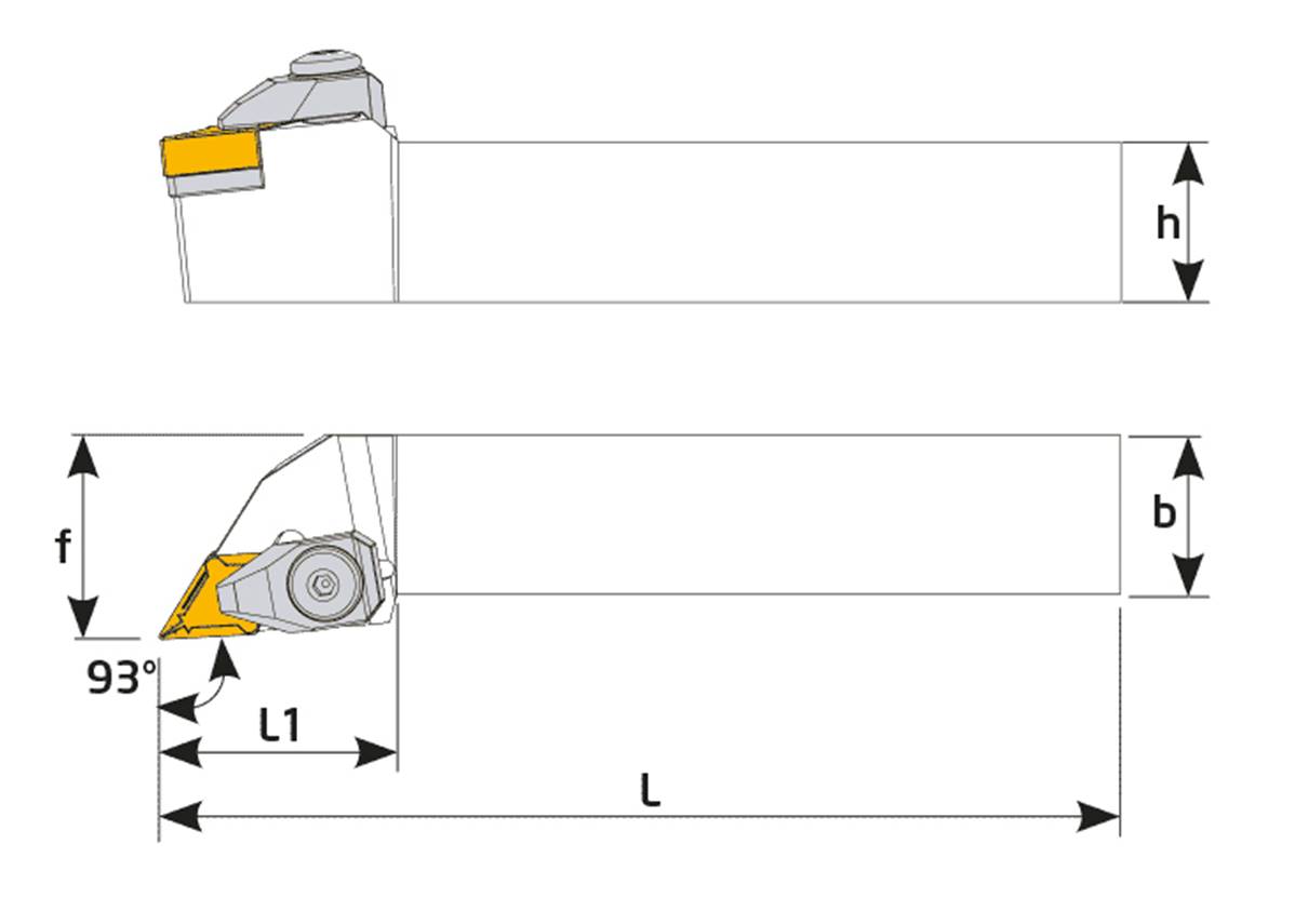 Porte outil de tournage exterieur 93° DDJNR - Plaquette DN 1506 - L 150mm - L1 35mm - h 25mm - f 32mm - b 25mm