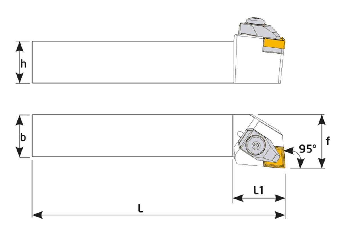 Porte outil de tournage exterieur 95° DCLNL - Plaquette CN 1606 - L 150mm - L1 36mm - h 25mm - f 32mm - b25mm