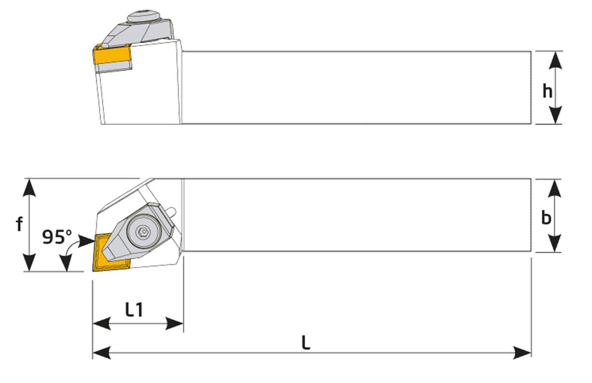 Porte outil de tournage exterieur 95° DCLNR - Plaquette CN 1204 - L 150mm - L1 30mm - h 25mm - f 32mm - b 25mm