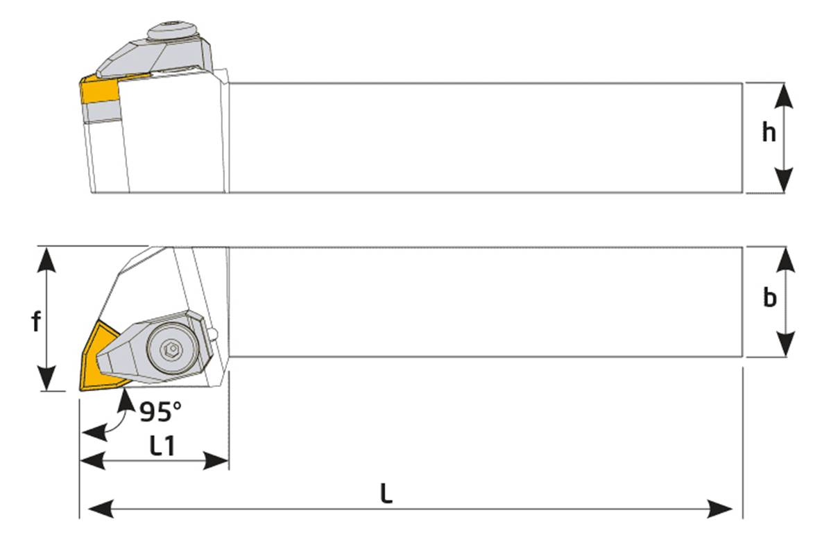 Porte outil de tournage exterieur 95° DWLNR - Plaquette WN 0804 - L 150mm - L1 32mm - h 25mm - f 32mm - b 25mm
