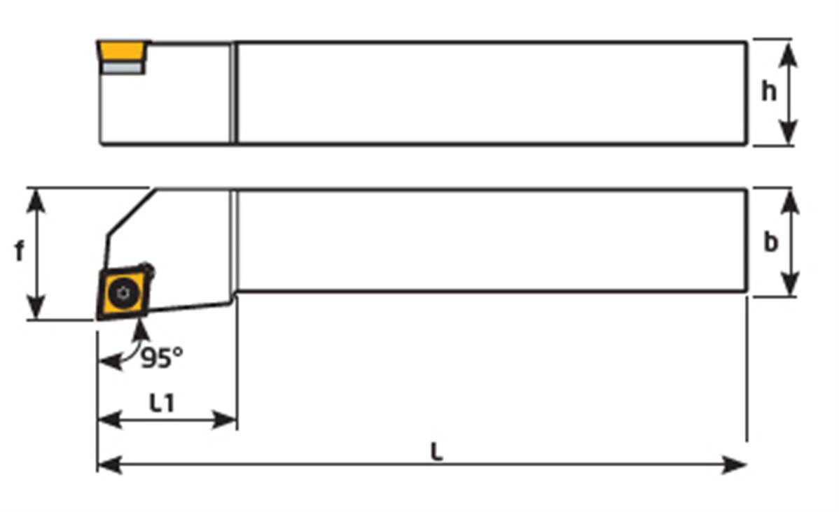 Porte outil de tournage exterieur 95° SCLCR - Plaquette CC 09T3 - L 150mm - L1 25mm - h 25mm - f 32mm - b 25mm