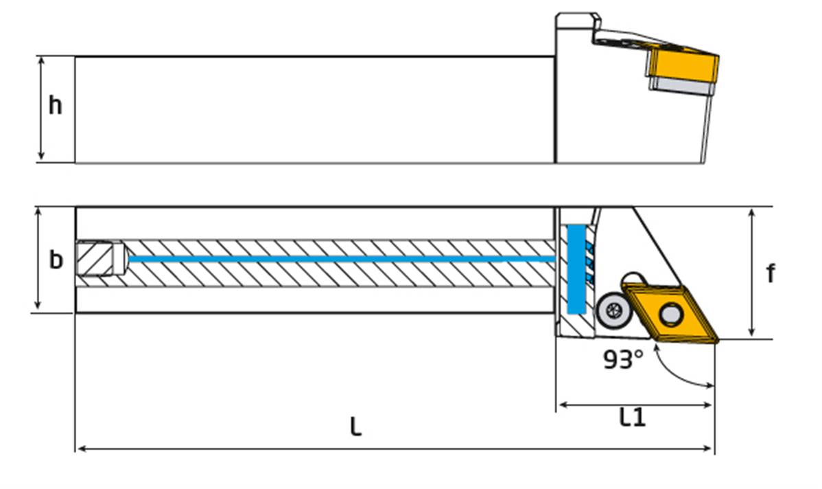 Porte outil de tournage lubrifié PDJNL 2525 M15-IKG1/8 External turning Holder (watercooled) Plaquettes DNMG 1506