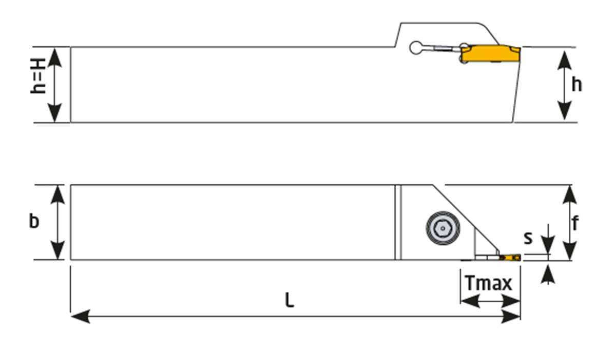 Porte outil de tronçonnage 2020 2C-123 SDV-L Grooving Holder Plaquettes 123 2C SDV - H 20 - b 20 - S 2 - Tmax 18 - f 20 - L 125