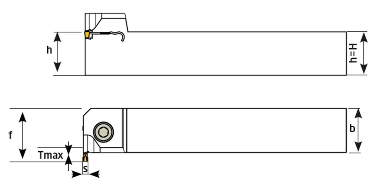 Porte outil de tronçonnage 2020 3C KGMN Grooving Holder Plaquettes KGMN 300 KRLY - Dmin 120 - Tmax 5 - H 20 - b 20 - S 3 - f 25 - L 125