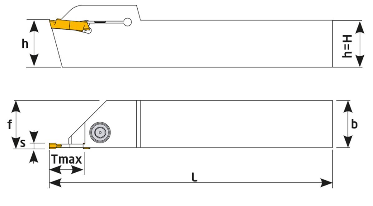 Porte outil de tronçonnage 2525 3C-R DGN Grooving Holder Plaquettes DGN 3C ISCR - H 25 - b 25 - S 3 - Tmax 25 - f 25 - L 150